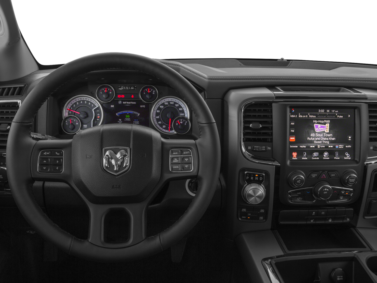 The Big Horn trim blends rugged capability with everyday comfort, featuring a spacious cabin with premium cloth seating, a leather-wrapped steering wheel, and a user-friendly Uconnect® infotainment system with Bluetooth® connectivity and voice command. You’ll also enjoy conveniences like a power driver’s seat, dual-zone climate control, remote keyless entry, and a premium sound system for an upgraded driving experience.