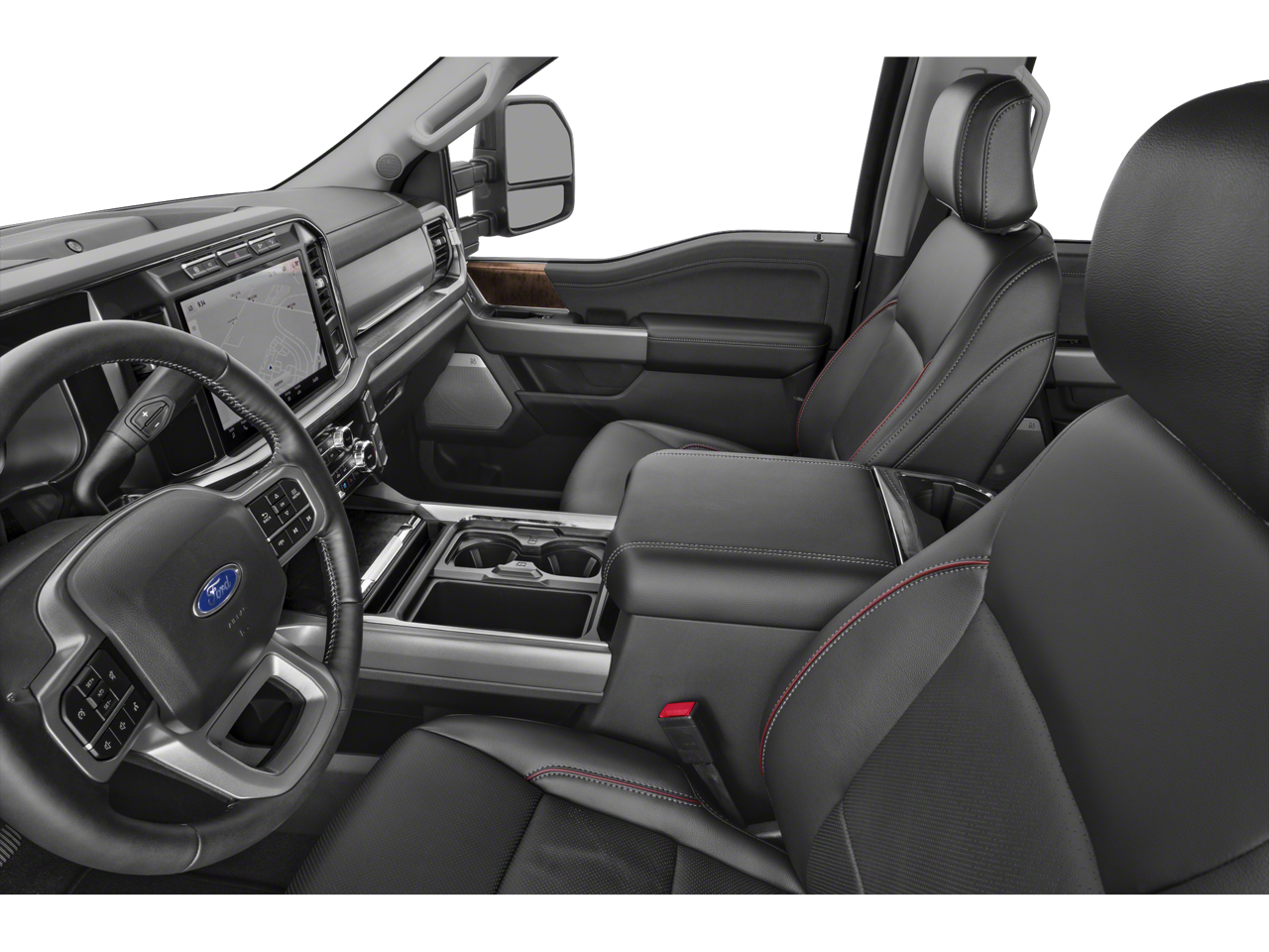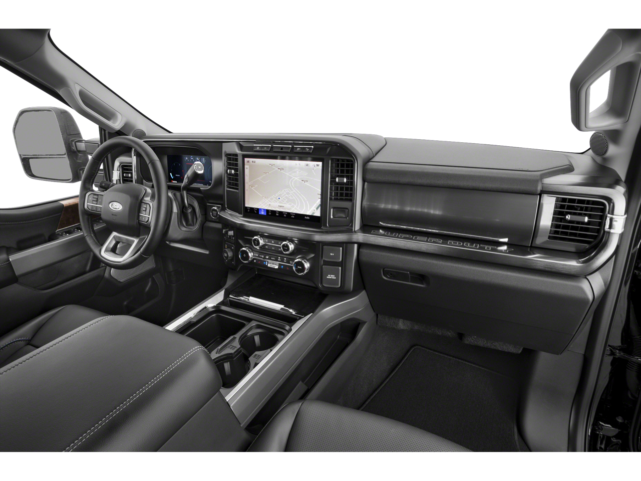 The Lariat trim offers a refined and well-equipped interior featuring premium leather-trimmed seating, heated and ventilated front seats, a large touchscreen infotainment system with Apple CarPlay® and Android Auto™, premium audio system, navigation capability, wireless charging, dual-zone automatic climate control, remote start, and power-adjustable front seats with memory settings. Advanced driver-assist and trailering technologies such as blind-spot monitoring with trailer coverage, adaptive cruise control, lane-keeping assist, a high-definition rearview camera, and integrated trailer brake controller help make towing and highway driving easier and more confident. With its spacious cabin, impressive towing capability, and advanced technology, this Super Duty is designed to handle the toughest jobs while keeping drivers comfortable on every mile.